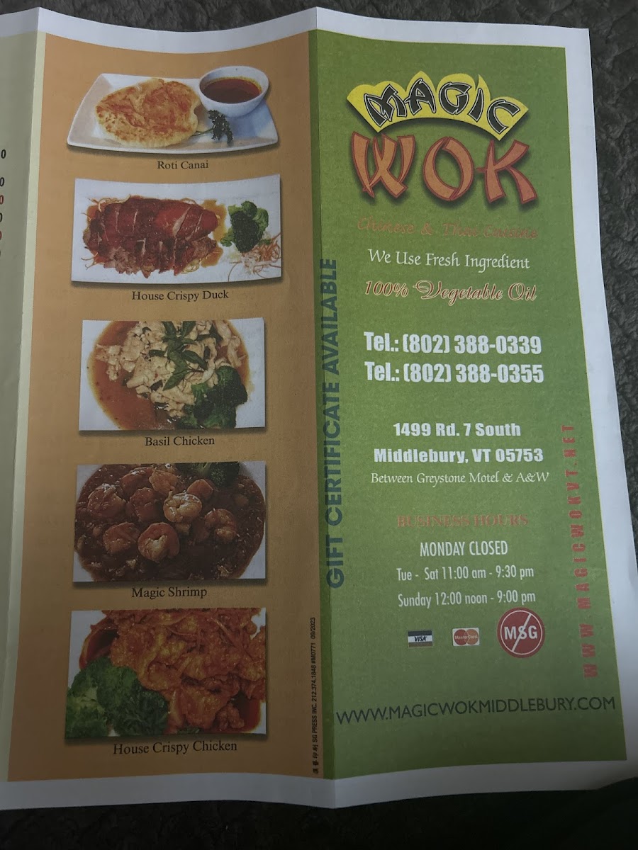 Introducing the Menu at Magic Wok Middlebury